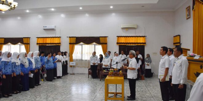 Metro, Mediamerdeka.co- Pengambilan Sumpah Janji Pegawai Negeri Sipil di Lingkungan Pemerintah Kota Metro dan Penyerahan SK Pengangkatan CPNS Pemerintah Kota Metro dari Formasi Pegawai Tidak Tetap (PTT) Kementerian Kesehatan Tahun 2019, Rabu (14/08/2019).