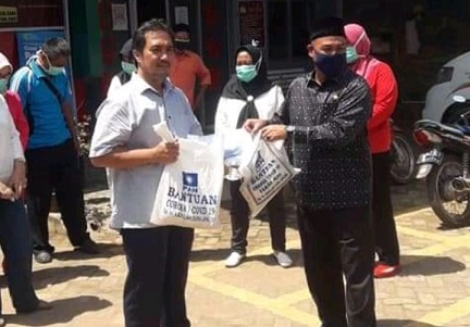 Lamteng (Mediamerdeka.co)-Anggota DPRD Propinsi Lampung dari Partai Amanat Nasional (PAN) Abdullah Surajaya, menyalurkan bantuan sembako dan alat pelindung diri (APD) di Puskesmas Wates Lampung Tengah, Rabu (22/04/2020).