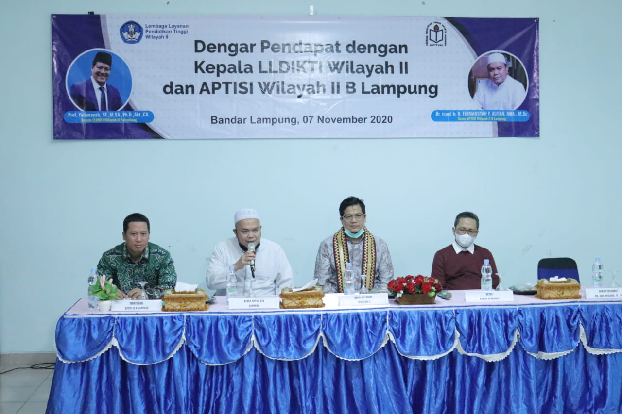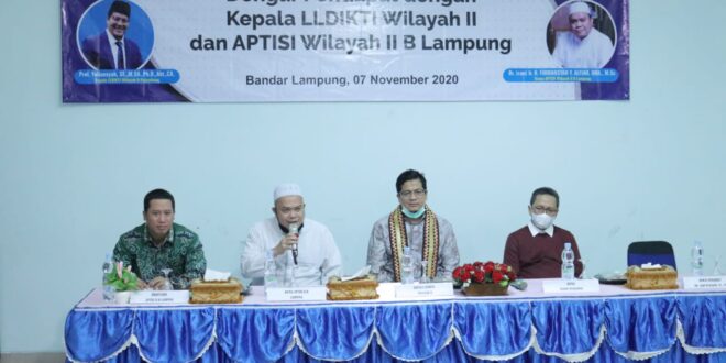 Bandarlampung,mediamerdeka.co-  Asosiasi Perguruan Tinggi Swasta Indonesia (APTISI) B Lampung menggelar silaturahmi dengan Lembaga Layanan Pendidikan Tinggi (LLDikti) wilayah II di Aula Pascasarjana Institut Informatika dan Bisnis (IIB) Darmajaya, Sabtu, (7/11/20).