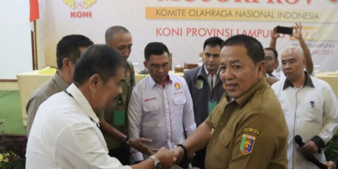 “Saya sampaikan penghargaan dan apresiasi yang setinggi-tingginya kepada seluruh Ketua KONI Kabupaten dan Kota se-Provinsi Lampung dan seluruh Ketua Pengprov Cabang Olahraga anggota KONI Lampung yang mendorong saya untuk menjadi Ketua Umum KONI Lampung Periode 2023-2027.” ucapnya.