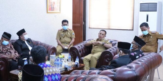 LAMSEL – MEDIAMERDEKA.CO – Bupati Lampung Selatan, H. Nanang Ermanto didamping Sekretaris Daerah Lampung Selatan, Thamrin, S.Sos, MM lakukan audiensi bersama Forum Kerukunan Antar Umat Beragama (FKUB) Lampung Selatan (Lamsel) di ruang kerja Bupati Lamsel, Senin (4/1/2021).