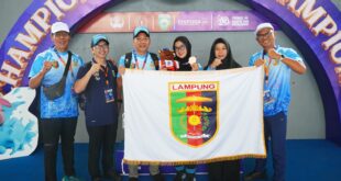 Palembang (MM) — Tim Tenis Meja Beregu Putri Lampung berhasil menorehkan prestasi membanggakan dengan meraih medali perunggu pada ajang Pekan Olahraga Nasional (Pornas) Korpri XVII Tahun 2025 yang digelar di Pitstop Table Tennis Centre, Palembang, Selasa (7/10/2025). Tim yang diperkuat oleh Lenny Armelia (Bapenda Provinsi Lampung), Early Widianingsih (Dinas Kesehatan …