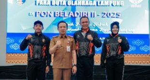 Bandar Lampung (MM) — Gubernur Lampung diwakili oleh Sekretaris Daerah Provinsi Lampung, Marindo Kurniawan melepas Kontingen Lampung yang akan mengikuti Pekan Olahraga Nasional (PON) Beladiri II-2025 yang akan berlangsung di Kudus-Jawa Tengah. Sebanyak 80 atlet yang terdiri dari 51 pria dan 29 wanita, serta didampingi 29 official yang terdiri atas …