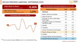 BANDAR LAMPUNG (MM) – Provinsi Lampung mencatat inflasi sebesar 0,16 persen secara bulanan (month to month/mtm) pada September 2025. Angka ini lebih rendah dibandingkan inflasi nasional yang berada di level 0,21 persen (mtm), menunjukkan stabilitas harga di daerah terus terjaga. Badan Pusat Statistik (BPS) Provinsi Lampung melaporkan, secara tahunan (year …