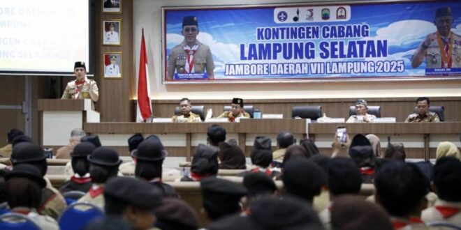 LAMSEL (MM) – Bupati Lampung Selatan Radityo Egi Pratama selaku Ketua Majelis Pembimbing Cabang (Mabicab) Gerakan Pramuka Lampung Selatan secara resmi melepas Kontingen Kwartir Cabang (Kwarcab) Lampung Selatan yang akan mengikuti Jambore Daerah Pramuka Penggalang Kwarda Lampung Tahun 2025.