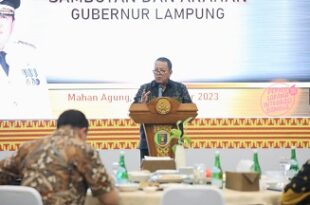 Bandarlampung (MM)- Gubernur Lampung Arinal Djunaidi mengajak semua pihak menyukseskan Pemilu dan Pilkada Serentak 2024 dengan sejuk, damai, dan kondusif. Hal tersebut disampaikan Gubernur Lampung Arinal Djunaidi dalam Acara Malam Silaturahmi Forkopimda Provinsi Lampung dan Penyelenggara Pemilu Bersama Ketua DPD/DPW Partai Politik Peserta Pemilu 2024, yang dilaksanakan di Mahan Agung, …