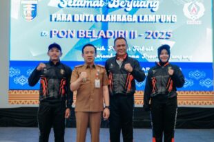 Bandar Lampung (MM) — Gubernur Lampung diwakili oleh Sekretaris Daerah Provinsi Lampung, Marindo Kurniawan melepas Kontingen Lampung yang akan mengikuti Pekan Olahraga Nasional (PON) Beladiri II-2025 yang akan berlangsung di Kudus-Jawa Tengah. Sebanyak 80 atlet yang terdiri dari 51 pria dan 29 wanita, serta didampingi 29 official yang terdiri atas …
