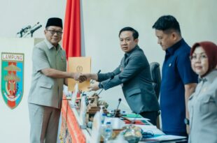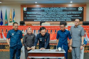 BANDAR LAMPUNG (MM) — Pemerintah Provinsi Lampung menyatakan setuju untuk melanjutkan pembahasan enam Rancangan Peraturan Daerah (Raperda) usul inisiatif Dewan Perwakilan Rakyat Daerah (DPRD) Provinsi Lampung. Penyampaian pendapat Gubernur Lampung tersebut disampaikan oleh Sekretaris Daerah Provinsi Lampung, Marindo Kurniawan, dalam Rapat Paripurna DPRD di Ruang Sidang Utama DPRD Provinsi Lampung, …