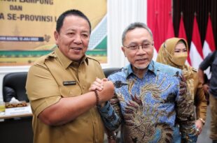 Bandarlampung ( Mediamerdeka)——- Menteri Perdagangan (Mendag) Zulkifli Hasan (Zulhas) bersama Gubernur Lampung Arinal Djunaidi bersinergi memastikan ketersediaan bahan pangan dan stabilitas harga di Provinsi Lampung. Hal itu terungkap saat Dialog Mendag Zulhas bersama Gubernur Lampung dan Bupati/Walikota di Mahan Agung, Rumah Dinas Gubernur, Selasa (12/7/2022). Hadir juga Sekretaris Jenderal Kementerian …