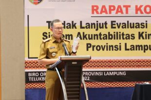 Bandarlampung ( Mediamerdeka)—— Gubernur Lampung Arinal Djunaidi, diwakili Sekretaris Daerah Provinsi Lampung Fahrizal Darminto, membuka Rapat Koordinasi Tindak Lanjut Evaluasi Reformasi Birokrasi (RB) dan Sistem Akuntabilitas Kinerja Instansi Pemeritah (SAKIP) Provinsi Lampung tahun 2022 di Hotel Golden Tulip, Selasa (14/6/2022). Sekdaprov Fahrizal mengatakan Gubernur Arinal meminta seluruh Satuan Kerja (Satker) …