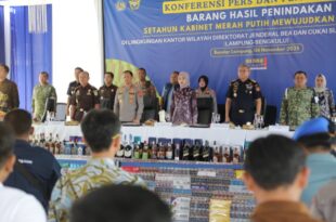 BANDARLAMPUNG — Pemerintah Provinsi Lampung bersama Kantor Wilayah Direktorat Jenderal Bea dan Cukai (DJBC) Sumatera Bagian Barat (Sumbagbar) melaksanakan pemusnahan barang hasil penindakan terhadap 29,18 juta batang rokok ilegal, 53,5 kilogram tembakau iris, serta 13,4 ribu liter minuman mengandung etil alkohol (MMEA), di Bandar Lampung, Kamis (6/11/2025). Kegiatan yang berlangsung …