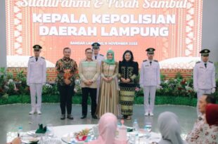 BANDARLAMPUNG — Suasana hangat terasa saat Gubernur Rahmat Mirzani Djausal bersama Wakil Gubernur Jihan Nurlela menghadiri acara Silaturahmi dan Pisah Sambut Kepala Kepolisian Daerah (Kapolda) Lampung di Mahan Agung, Kamis (6/11/2025) malam. Kegiatan tersebut menjadi momentum mempererat sinergi antara Pemerintah Provinsi Lampung dan jajaran Kepolisian Daerah Lampung dalam menjaga keamanan …