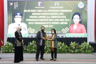 Bandarlampung ( Mediamerdeka)- — Gubernur Arinal Djunaidi menghadiri Penyerahan Penghargaan Anugerah Parahita Ekapraya (APE) Provinsi Lampung Tahun 2020 dan Kabupaten/Kota serta Penghargaan Kabupaten/Kota Layak Anak (KLA) oleh Menteri Pemberdayaan Perempuan dan Perlindungan Anak (PPPA), Bintang Puspayoga, di Mahan Agung, Sabtu (27/11). Gubernur Arinal menerima Penghargaan Anugerah Parahita Ekapraya 2020 Kategori …