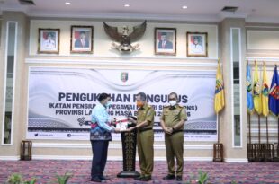 Bandarlampung ( Mediamerdeka)—— Gubernur Lampung yang diwakili oleh Sekretaris Daerah Provinsi Lampung, Fahrizal Darminto, melantik sekaligus mengukuhkan Pengurus Ikatan Pensiunan Pegawai Negeri Sipil (IPPNS) Provinsi Lampung Masa Bakti 2021-2026, di Balai Keratun Lt.III, Senin (6/12). Pelantikan Kepengurusan IPPNS Provinsi Lampung Masa Bakti 2021-2026 ini berdasarkan Keputusan Dewan Penasehat IPPNS Nomor …