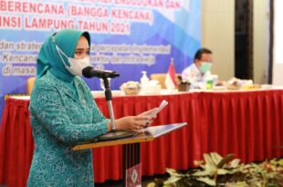 Bandarlampung, mediamerdeka– Ketua Tim Penggerak PKK Provinsi Lampung Ibu Riana Sari Arinal memberikan arahan dalam Rapat Kerja Daerah (Rakerda) dan Rapat Koordinasi Teknis (Rakornis) Kemitraan Program Pembangunan Keluarga, Kependudukan dan Keluarga Berencana (Bangga Kencana) Provinsi Lampung tahun 2021 yang diadakan oleh BKKBN Provinsi Lampung, di Ballroom Hotel Emersia, Selasa (23/2/2020). …