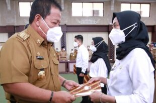 Bandarlampung, mediamerdeka.co- Gubernur Lampung Arinal Djunaidi menyerahkan 410 Surat Keputusan (SK) Calon Pegawai Negeri Sipil Daerah (CPNSD) Formasi Tahun 2019 di Lingkungan Pemerintah Provinsi Lampung, secara simbolis, di Gedung Pusiban, Komplek Kantor Gubernur, Bandarlampung, Selasa (12/1/2021). SK yang diserahkan tersebut terdiri dari tenaga kependidikan 169 orang, tenaga kesehatan 41 orang, …