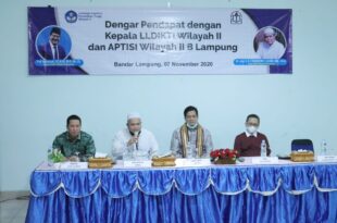 Bandarlampung,mediamerdeka.co- Asosiasi Perguruan Tinggi Swasta Indonesia (APTISI) B Lampung menggelar silaturahmi dengan Lembaga Layanan Pendidikan Tinggi (LLDikti) wilayah II di Aula Pascasarjana Institut Informatika dan Bisnis (IIB) Darmajaya, Sabtu, (7/11/20). Silaturahmi dihadiri seluruh pimpinan perguruan tinggi swasta di Provinsi Lampung. Kepala LLDikti Wilayah II Prof. Yuliansyah, SE., MSA., Ph.D., Akt., …