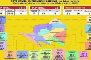 Bandarlampung (Mediamerdeka.co) – Dinas Kesehatan Provinsi Lampung menyebutkan satu penambahan pasien positif COVID-19 dan pasien dalam pengawasan (PDP) yang meninggal dunia merupakan warga Kota Bandarlampung. “Dengan tambahan satu pasien ini menjadikan saat ini Lampung memiliki 67 kasus positif COVID-19,” kata Kepala Dinas Kesehatan Provinsi Lampung Reihana, di Bandarlampung, Minggu, (17/05) …