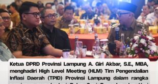 Bandar Lampung,-Ketua DPRD Provinsi Lampung A. Giri Akbar, S.E., MBA, menghadiri High Level Meeting (HLM) Tim Pengendalian Inflasi Daerah (TPID) Provinsi Lampung dalam rangka persiapan menghadapi Bulan Suci Ramadan dan Hari Raya Idulfitri 1447 Hijriah. Kegiatan ini berlangsung di Kantor Perwakilan Bank Indonesia Provinsi Lampung, Selasa (10/2/2026). HLM TPID tersebut …