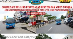Bandarlampung (Mediamerdeka.co)- BNN Provinsi Lampung melakukan sosialisasi keliling dalam rangka pencegahan penyebaran COVID-19 bagi masyarakat Lampung. “Kami mengajak dan menghimbau masyarakat Lampung untuk mendukung upaya pemerintah dalam menanggulangi penyebaran COVID-19 yang telah menjadi wabah global dengan menjaga diri dari virus yang Meresahkan,” kata Koordinator Satgas Sosialisasi dan Pencegahan Penanggulangan Virus …