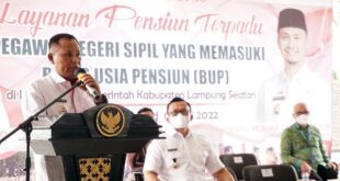 Lampung selatan, mediamerdeka– Pemerintah Kabupaten (Pemkab) Lampung Selatan melalui Badan Kepegawaian dan Diklat (BKD) menggelar Sosialisasi Layanan Penisun Terpadu bagi 237 PNS yang memasuki masa Batas usia Pensiun (BUP). Sosialisasi yang digelar di Aula Sebuku, rumah dinas bupati setempat, dibuka langsung oleh Bupati Lampung Selatan, H. Nanang Ermanto, pada Rabu …