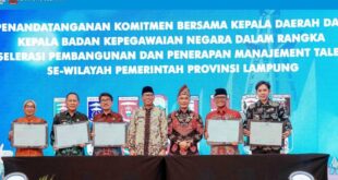 LAMSEL, (mediamerdeka.co) – Bupati Lampung Selatan, Radityo Egi Pratama, menandatangani Komitmen Bersama Kepala Daerah dan Badan Kepegawaian Negara (BKN) dalam rangka mempercepat pembangunan serta penerapan manajemen talenta Aparatur Sipil Negara (ASN) di wilayah Provinsi Lampung. Kegiatan yang turut dihadiri oleh Gubernur Lampung Rahmat Mirzani Djausal dan Kepala BKN Zudan …
