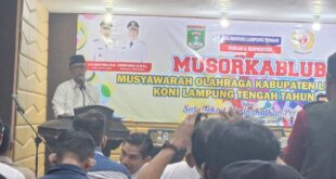 LAMPUNG TENGAH,-Bupati Lampung Tengah, dr. H. Ardito Wijaya, MKM., menyatakan komitmen dan dukungan penuh Pemerintah Kabupaten (Pemkab) Lamteng terhadap kepengurusan baru Komite Olahraga Nasional Indonesia (KONI). Dukungan ini disampaikan menyusul terpilihnya Saudara Agustam sebagai Ketua KONI Kabupaten Lampung Tengah periode baru dalam Musyawarah Olahraga Kabupaten Luar Biasa (Musorkablub) yang digelar …