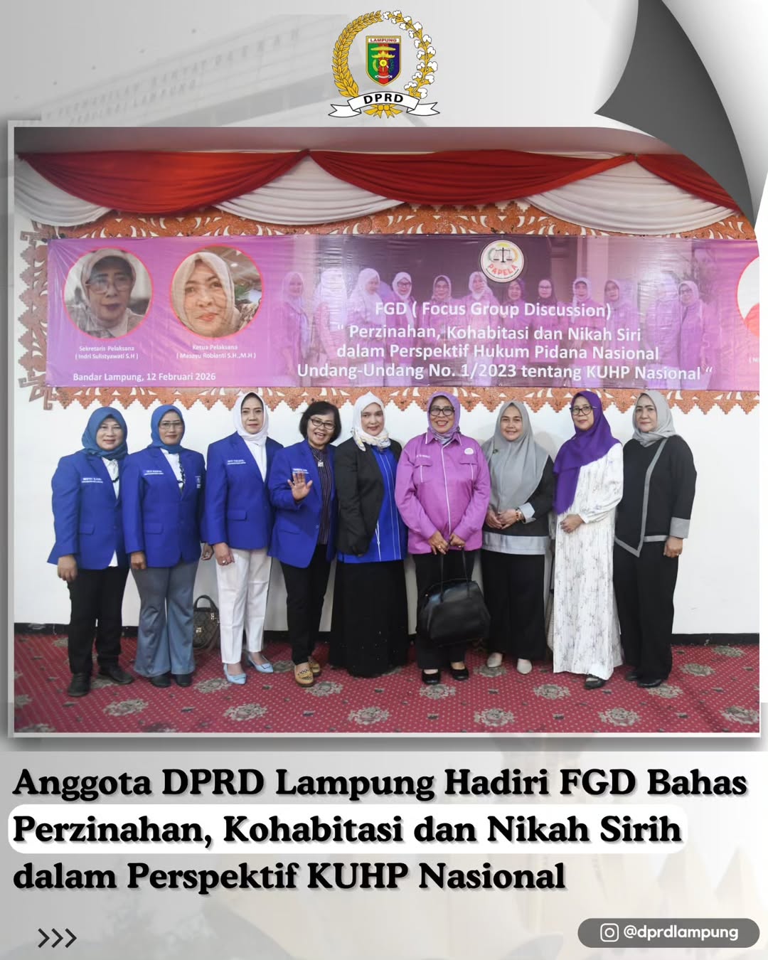 Bandar Lampung — Anggota DPRD Provinsi Lampung dari Fraksi Partai Amanat Nasional (PAN), Diah Dharma Yanti, menghadiri kegiatan Focus Group Discussion (FGD) yang diselenggarakan oleh Perkumpulan Advokat Perempuan Lampung di Balai Keratun, Kamis (12/2/2026).