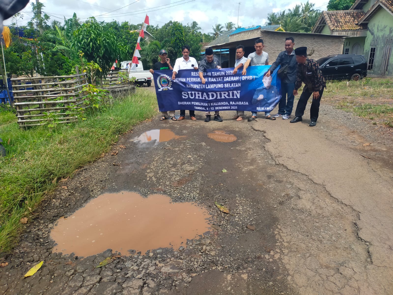 Lamsel, mediamerdeka.co–Anggota DPRD Lampung Selatan lakukan tinjau lapangan di jalan Damakh Khenik Dusun Batu Balai menuju SMPN 3 Kalianda dan jalan pariwisata Desa Merak Belantung menuju Desa Bulok Kecamatan Kalianda Lampung Selatan, Selasa (9/12/2025).