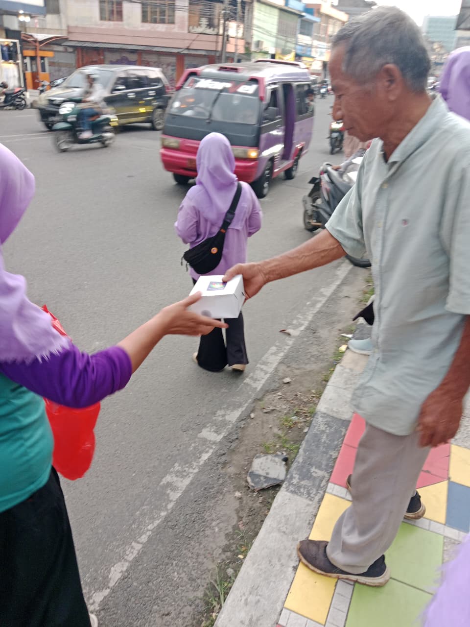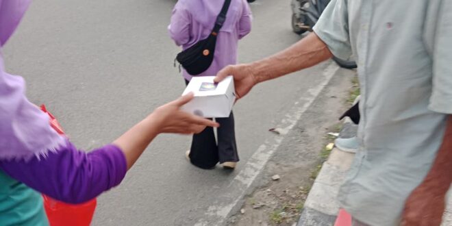 Takjil dibagikan kepada pengguna jalan raya, pedagang, dan seluruh masyarakat yang melintas di wilayah tersebut.