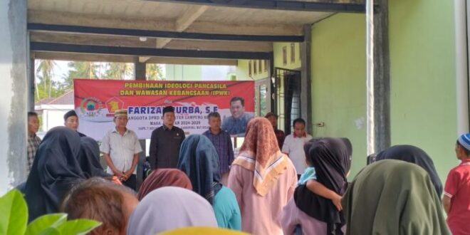 Lampung Selatan , mediamerdeka.co– Anggota DPRD Lampung Selatan Fraksi Partai Gerindra DPRD Farizal Purba, mengadakan kegiatan Sosialisasi Pembinaan Ideologi Pancasila dan Wawasan Kebangsaan ( IPWK) di Dusun Tanjung Baru, Desa Tanjungan. Acara tersebut dihadiri tokoh agama, tokoh pemuda, serta warga masyarakat yang antusias mengikuti jalannya kegiatan. Minggu (14/9/2025)