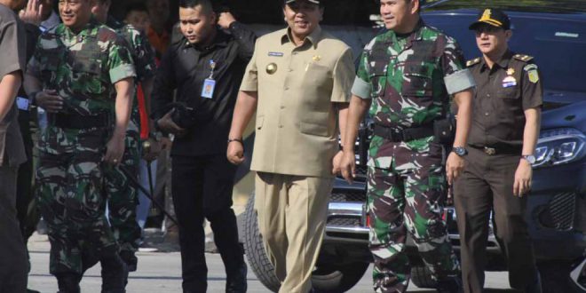Dari Pantauan dilapangan, Gubernur Arinal Djunaidi datang bersama- bersama dengan rombongan Kepala Staf Kodam (Kasdam) II/ Sriwijaya Brigjend TNI Syafrial, psc, MTr. (Han) dan Komandan Korem 043/ Gatam Kolonel Inf. Taufik Hanafi.