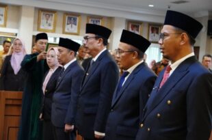 BANDARLAMPUNG — Pemerintah Provinsi Lampung melantik lima Pejabat di Lingkungan Pemerintah Provinsi Lampung, di Ruang Rapat Utama Kantor Gubernur Lampung, Jumat (5/12/2025). Pelantikan dilakukan Sekretaris Daerah Provinsi Lampung, Marindo Kurniawan atas nama Gubernur. Pelantikan tersebut berdasarkan Surat Keputusan Gubernur Lampung Nomor 800.1.3.3/6537/6.04/2025 dan 800.1.3.3/6538/6.04/2025 tentang pengangkatan, pemindahan, dan pemberhentian PNS …