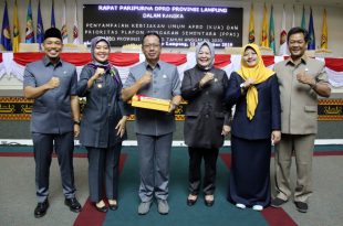 Bandarlampung, Media merdeka.co— Wakil Gubernur Lampung Chusnunia Chalim (Nunik) menyerahkan dokumen rancangan Kebijakan Umum APBD (KUA) dan Prioritas Plafon Anggaran Sementara (PPAS) APBD Provinsi Lampung Tahun 2020, dalam Sidang Paripurna DPRD Provinsi Lampung, Selasa (12/11/2019). Wagub Nunik mengatakan Pemerintah Provinsi (Pemprov) Lampung fokus mengentaskan kemiskinan di tahun 2020 dengan melakukan …