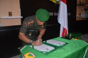 Bandarlampung. Komandan Korem 043/Garuda Hitam Kolonel Inf Taufiq Hanapi memimpin langsung, acara serah terima Jabatan Dandim 0410/KBL Letkol Arm Wahyu Jatmiko, S.Sos, MM kepada Letkol Inf Romas Herlandes, SE,M.Si,MM yang berlangsung, di Graha Ahmad Yani Makorem 043/Garuda Hitam, Bandar Lampung Kamis (22/8/19). Sertijab Dandim 0410/Kota Bandarlampung tersebut ditandai pelepasan/pemasangan tanda …