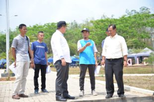 Pesawaran, (Mediamerdeka.co)- Jumat Barokah, Bupati Dendi Ramadhona bersama Kadis PUPR tinjau lokasi taman Sidototo Kabupaten Pesawaran, selain meninjau Bupati juga menyambangi pedagang dilokasi sekitar tempat tersebut. Bupati Dendi mengatakan Taman Sidototo yang nantinya selain sebagai pusat kulineran disini juga akan menjadi pusat olahraga dan kesenian. PapatnyP kepada awak media(red/kmnfo)