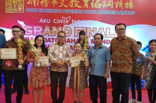 Bandarlampung, (Mediamerdeka.co)- Badan Koordinator Pendidikan Bahasa Mandarin Lampung menggelar lomba pidato bahasa Mandarin di Mal Boemi Kedaton, kutip lampungpos.co,Sabtu (3/8/2019). Sebanyak 26 peserta ikut dalam perlombaan yang terbagi dalam tiga kategori yakni anak-anak, remaja dan dewasa. Dari hasil penilaian dua Juri dalam perlombaan untuk katagori anak-anak juara I diraih oleh …