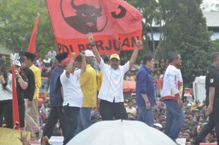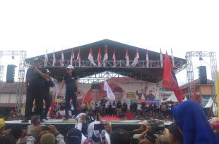 TULANG BAWANG BARAT – Ketua Pendukung Jokowi (Pujo) Provinsi Lampung Arinal Djunaidi didampingi Wakil Ketua Pujo Umar Ahmad yang juga Bupati Tulang Bawang Barat memimpin langsung Deklarasi Pujo Kabupaten Tulang Bawang Barat (Tubabar) di Lapangan Daya Murni, Kabupaten setempat, Jumat (5/4/2019). Umar Ahmad yang tengah cuti diluar tanggungan negara sebagai …