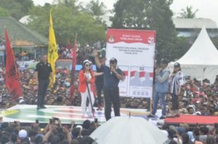 Media merdeka.co- Deklarasi pendukung Jokowi (Pujo) Kabupaten Tulangbawang Barat, Arinal Djunaidi ajak masyarakat Menangkan Jokowi-Ma’ruf Amin di pilpres 17 April 2019 mendatang. “ Apa kabarnya masyarakat Tulangbawang Barat?, Apik yo, gimana pupuk?, gimana harga karet?. Di Tulangbawang Barat ini akan dijadikan sebagai Unit prosesing karet, supaya harga karet meningkat, mau …
