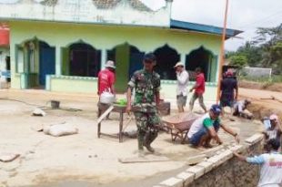 Mesuji, MM- Sersan Satu (Sertu) Triwilopo, Bintara Pembina Desa (Babinsa) Desa Muara Tenang, Kecamatan Tanjung Raya, Kabupaten Mesuji, turut bersama-sama dengan masyarakat bergotonng royonng membangun Mushola Al Mushawaro di RK 05, Desa Muara Tenang, Selasa (26/3/2019). “Bergotonng royonng adalah sendi kehidupan masyarakat Desa Muara Tenang yang selama ini tetap dipelihara …