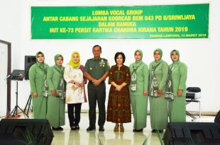 Mediamerdeka.co-Ketua Persit KCK Koorcab Rem 043 PD II/Swj Ny. Rica Taufiq Hanafi, rabu (13/03) pkl. 08.00 wib membuka lomba Vocal Group antar Cabang Sejajaran Koorcab Rem 043 PD II/Sriwijaya, bertempat di Graha Sudirman Makorem 043/Garuda Hitam, Jl. Teuku Umar Bandar Lampung. Lomba Vocal Group antar Cabang Sejajaran Koorcab Rem 043 …