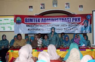 Media merdeka.co– Ketua Tim Penggerak Pemberdayaan Kesejahteraan Keluarga (PKK) Kabupaten Lampung Selatan Winarni Nanang Ermanto membuka bimbingan teknis (bimtek) bagi pengurus dan kader PKK desa di Kecamatan Jati Agung, Senin (4/3/2019). Bimtek tahap pertama yang dilaksanakan di Desa Margorejo itu, turut dihadiri jajaran pengurus Tim Penggerak PKK Kabupaten, Camat Jati …