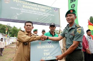 Media merdeka.co– Sebanyak 40 hunian sementara (huntara) bantuan TNI diserahkan kepada warga terdampak tsunami Selat Sunda di Kecamatan Rajabasa. Penyerahan bantuan secara simbolis dilakukan Kepala Staf Kodim (Kasdim) 0421 Lampung Selatan Mayor Infantri Agus Waluyo di lokasi huntara yang berada di Desa Way Muli Induk, Kecamatan Rajabasa, Selasa (5/3/2019). Turut …
