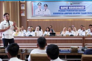 Lampung Selatan (MM) –-Pemerintah Kabupaten (Pemkab) Lampung Selatan menggelar rapat koordinasi bulanan di Aula Krakatau, kantor bupati setempat, Rabu (10/9/2025). Rapat yang biasanya hanya diikuti pejabat eselon II kali ini digelar dalam dua sesi, dengan melibatkan hingga pejabat eselon IV yang membidangi perencanaan. Dalam arahannya, Bupati Lampung Selatan, Radityo Egi …