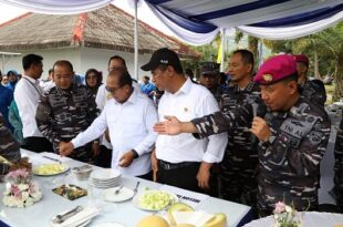 Pesawaran (MM)- Pj. Gubernur Lampung Samsudin mendampingi kunjungan kerja Menteri Pertanian Andi Amran Sulaiman dan Kepala Staf Angkatan Laut yang diwakili Wakil Kepala Staf Angkatan Laut Erwin S. Aldedharma dalam rangka meninjau program ketahanan pangan, di Markas Komando Brigade Infanteri (Brigif) 4, Kecamatan Padang Cermin, Kabupaten Pesawaran, Rabu (10/07/2024). Rombongan …