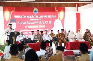 Lamsel (MM)– Pemerintah Kabupaten (Pemkab) Lampung Selatan menggelar acara peringatan Nuzulul Qur’an 1444 Hijriah/2023 Masehi di Aula Sebuku, rumah dinas bupati setempat, Senin (10-4-2023). Rangkain peringatan Nuzulul Qur’an dibuka langsung oleh Bupati Lampung Selatan H. Nanang Ermanto turut dihadiri Ketua Tim Penggerak PKK Lampung Selatan Hj. Winarni Nanang Ermanto, Forkopimda …