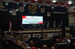 Metro (Mediamerdeka)-DPRD) Kota Metro menggelar rapat paripurna tentang penyampaian Laporan Keterangan Pertanggungjawaban (LKPJ) Walikota Metro tahun 2022. Kegiatan ini diadakan di Ruang sidang Aula atas DPRD setempat, Jum’at 17 Maret 2023 ini dihadiri 21 Anggota DPRD Kota Metro dari keseluruhan sebanyak 25 Anggota. Dalam penyampaiannya, Walikota Metro, Wahdi Siradjuddin membacakan …
