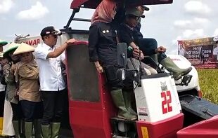 Lamteng (Mediamerdeka)-Asisten Bidang Perrkonomian dan Pembangunan Provinsi Lampung, Kusnardi, mewakili Gubernur Lampung menghadiri Panen Raya Nusantara di Kelompok tani Adem Ayem, Kampung Untoro Kecamatan Trimurjo, Kabupaten Lampung Tengah, Sabtu (11/3/2023). Asisten Bidang Perekonomian dan Pembangunan Provinsi Lampung, Kusnardi yang membacakan sambutan tertulis Gubernur Lampung mengatakan, bahwa komoditas padi merupakan komoditas …
