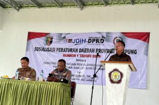 Lamteng ( Mediamerdeka)——Ketua DPRD Lampung, Mingrum Gumaymenggelar kegiatan Sosialisasi Peraturan Daerah (Sosperda) Nomor 1 Tahun 2018 Tentang Pencegahan Penyalahgunaan Narkotika Psikotropika dan Zak Adiktif Lainnya yang dilaksanakan di SMA N 1 Sendang Agung, Lampung Tengah, Senin (12/12). Mingrum Gumay mengungkapkan DPRD Lampung berkolaborasi dengan Badan Narkotika Nasional Provinsi (BNNP) memasifkan …