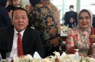 Solo ( Mediamerdeka)—Gubernur Lampung Arinal Djunaidi, hadir pada acara Tasyakuran pernikahan putra bungsu Presiden Joko Widodo (Jokowi), Kaesang Pangarep dan Erina Gudono di Pura Mangkunegaran, Solo, Minggu (11/12/2022). Gubernur Arinal yang mengenakan pakaian setelan jas hitam dengan dasi merah didampingi ibu Riana Sari, tampak mengikuti prosesi acara Ngunduh Mantu, putra …